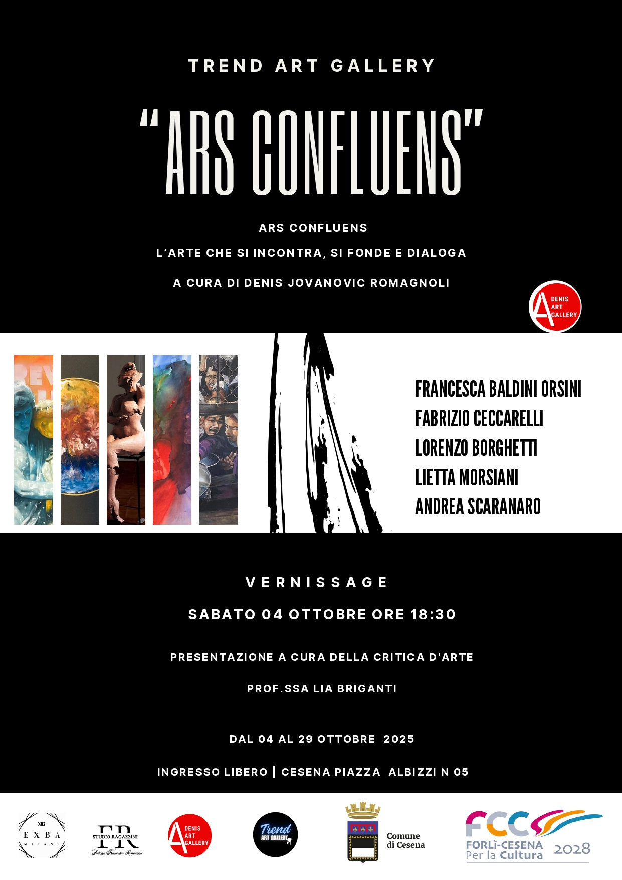 Sabato 4 ottobre 2025, alle ore 18:30, presso Trend Art Gallery sarà inaugurata la mostra ARS CONFLUENS, a cura di Denis Jovanovic Romagnoli.