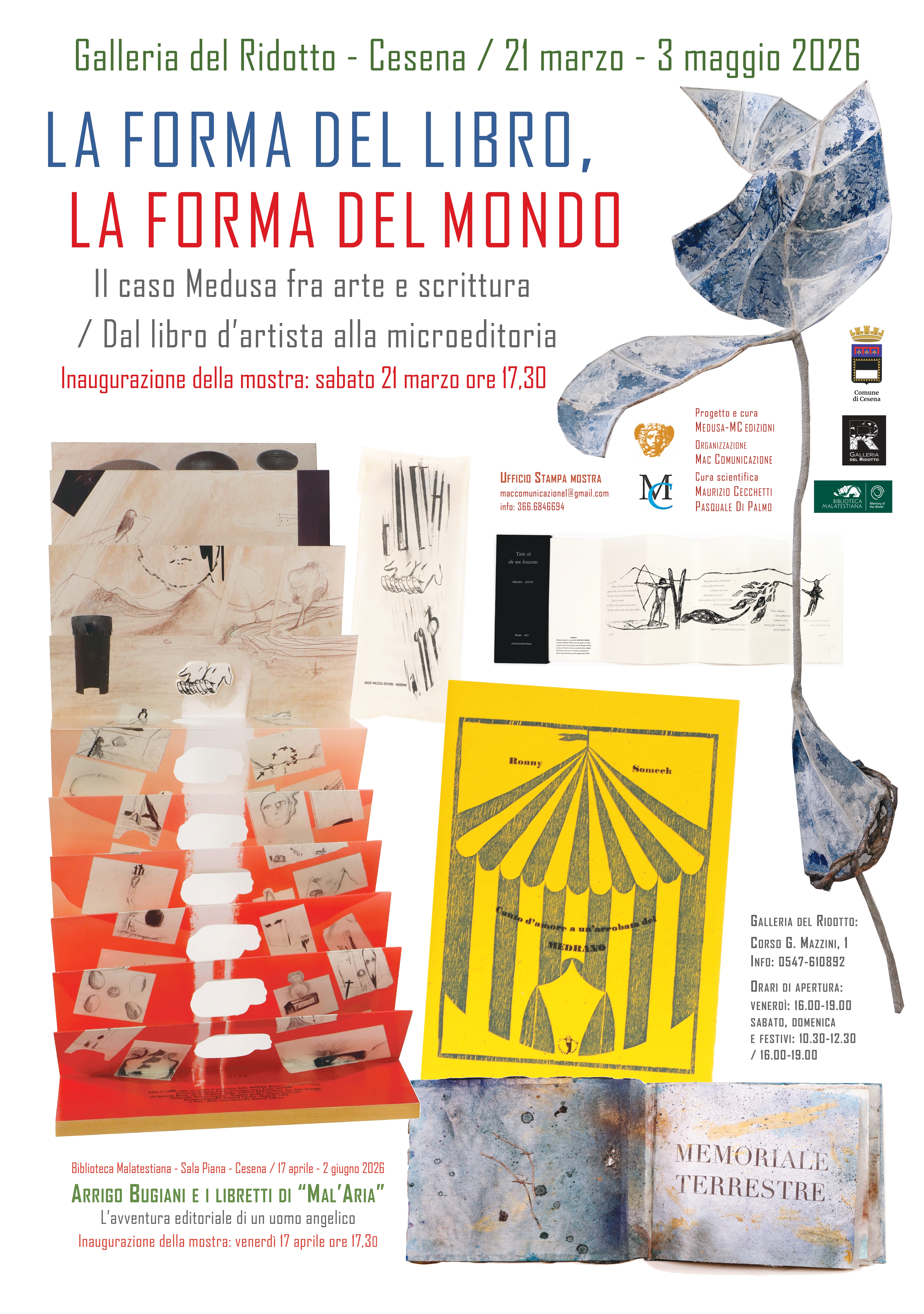 La mostra propone un percorso dedicato al libro come forma d’arte e spazio di sperimentazione, un viaggio tra libri d’arte, libri d’artista, opere visive e progetti di microeditoria che raccontano l’esperienza di Edizioni Medusa / MC Edizioni, celebrandone i 25 anni di attività tra arte, poesia e ricerca grafica.