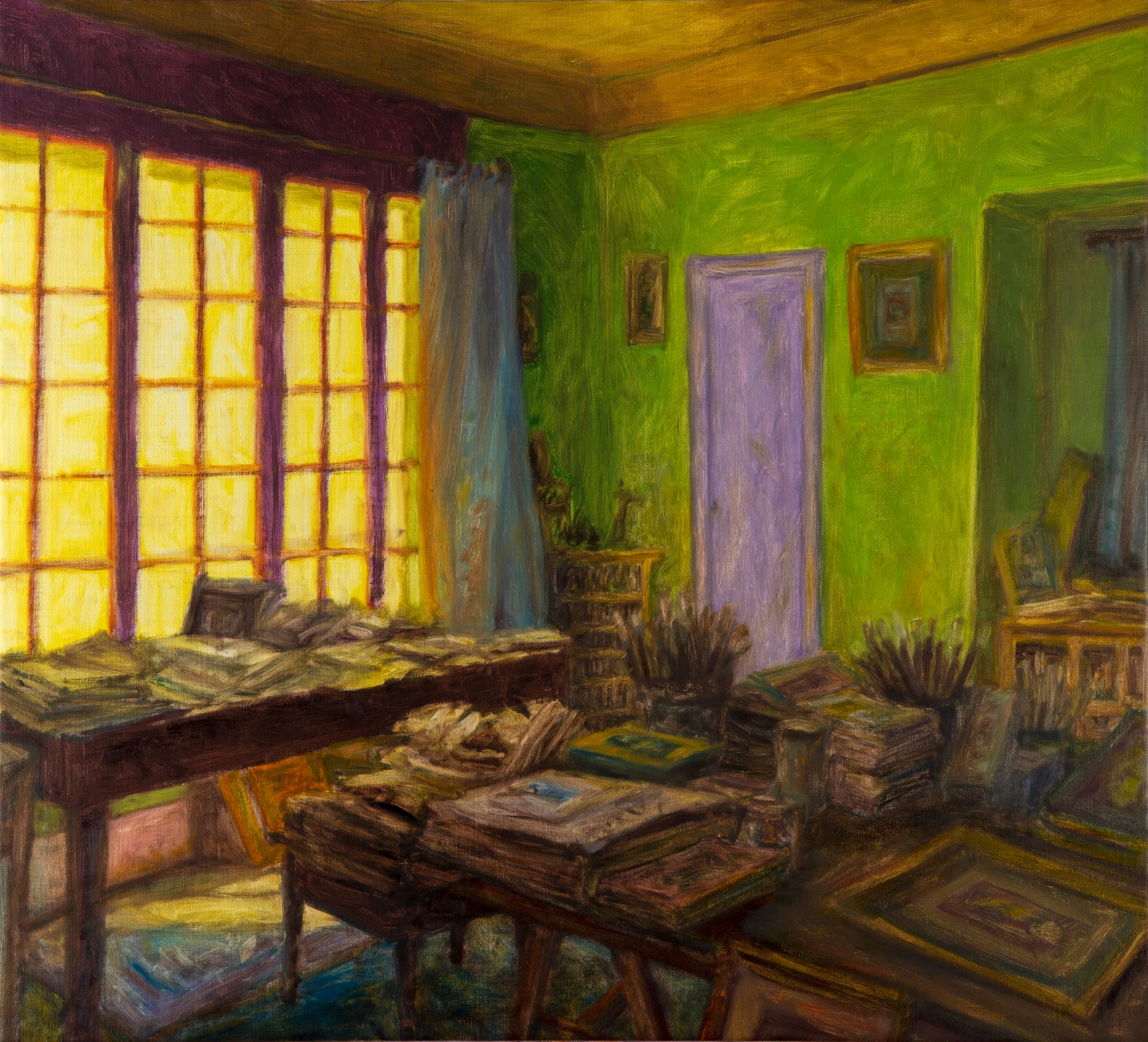 Carlo Cola (Cesena, 1957), che per questa occasione presenta opere di media e grande dimensione, alcune delle quali uscite solo raramente dal suo studio, predilige da sempre il tema della casa nelle sue multiformi manifestazioni: studi, camere da letto, salotti, giardini.