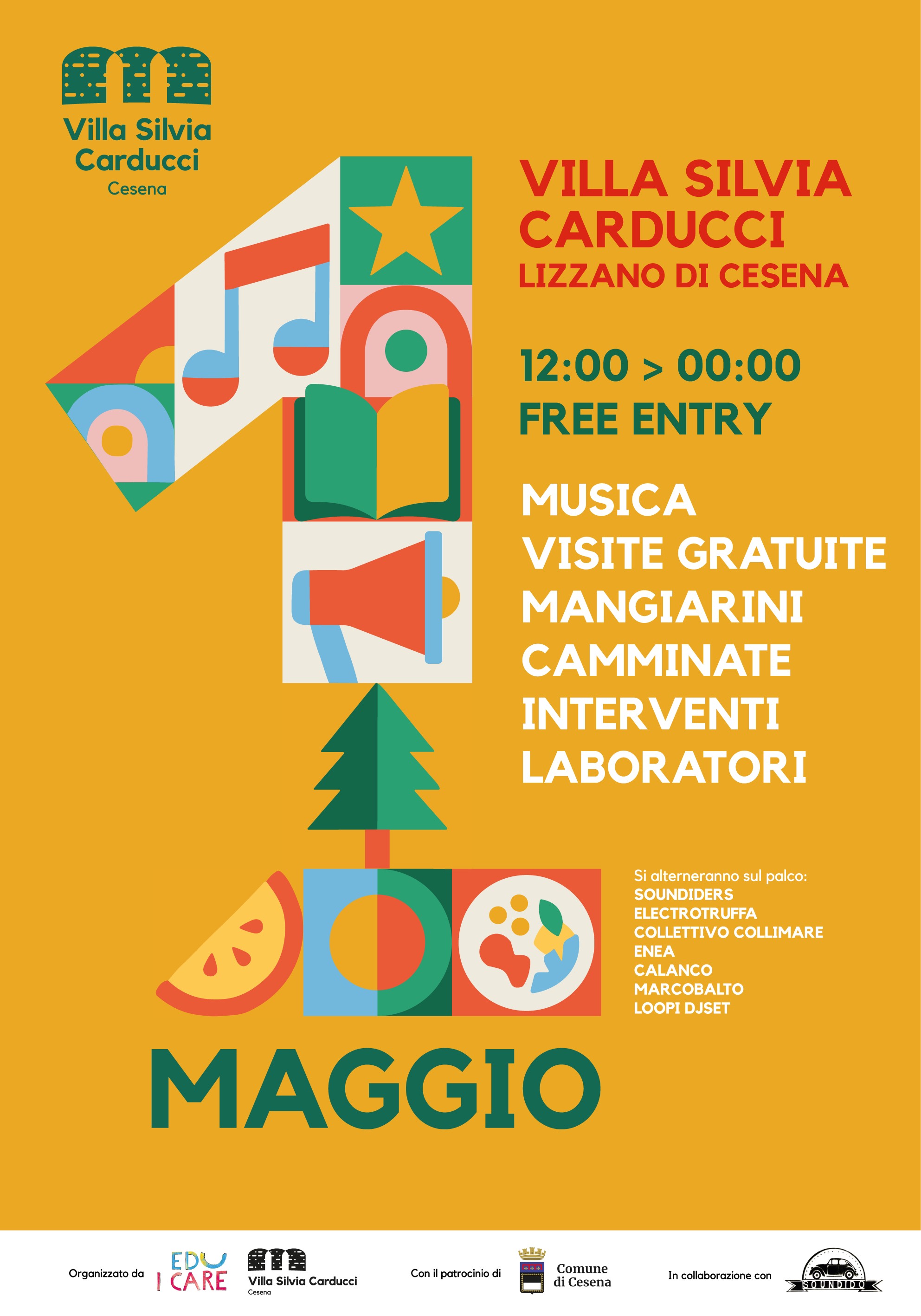 Il 1° maggio 2026 Villa Silvia Carducci, a Lizzano di Cesena, si trasforma in un grande spazio di festa aperto a tuttə: ingresso gratuito, dalle 12:00 fino a mezzanotte.